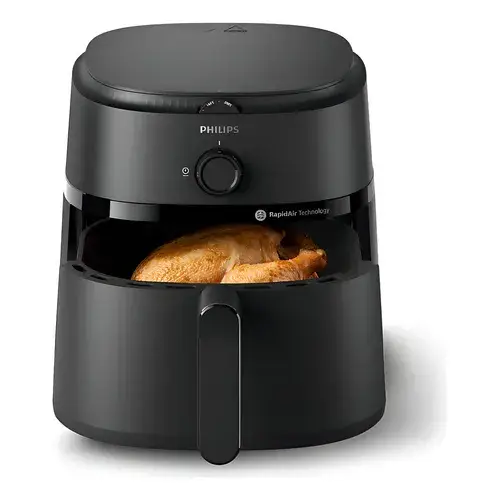 La Philips Airfryer Serie 1000 es la aliada perfecta para preparar comidas más saludables sin renunciar al sabor. Gracias a su tecnología Rapid Air, cocina los alimentos con hasta un 90% menos de grasa, dejándolos crujientes por fuera y tiernos por dentro, utilizando poco o nada de aceite.