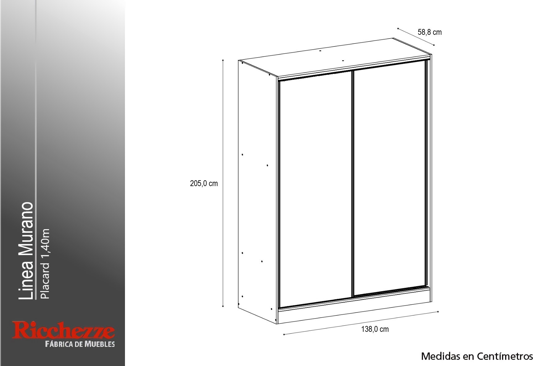PLACARD MURANO 1.40 pino blanco 2 Puertas Corredizas (sin espejos) cantidad